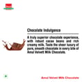 Amul Velvett Milk Chocolate: A truly superior chocolate experience, with robust cacao beans and rich creamy milk. Taste the sheer luxury of pure, smooth chocolate in every bite of Amul velvett milk chocolate. Made with the quality of Amul milk, Melts into a moment of luxury with pure and smooth Amul Velvett milk chocolate.